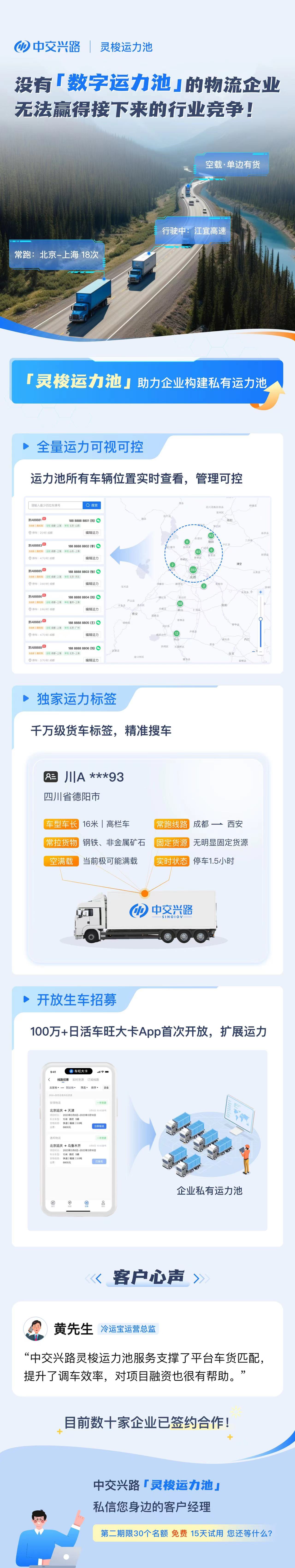 开云手机站官方版网站登录入口充分认识到这一挑战,基于货运大数据底座和灵梭算法引擎,在货物、司机、车辆、路线等多维度数据的基础上,实现运力的智能推荐和连接,解决物流企业匹配运力效率低下的问题,快速为物流企业推荐最适合的车辆。同时,让这些运力由线下变成线上可视化的数字资源,使物流企业不断积累、持续复用。此外,平台集成的“灵动”引擎可实现基于运单的在途管理和异常监控,为物流企业、货主企业的货物在途管理提供强有力支撑,大幅降低运输风险。